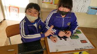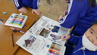 2023年1月23日 15時43分3年生が下郷町の自慢の場所をグループで協力しながら、画用紙にまとめています