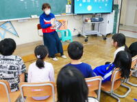 2023年10月5日 09時25分朝のスキルアップの時間に、図書ボランティアの方々に読み聞かせをしていただいています。