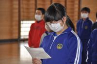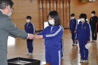 2021年3月8日 14時25分本校では、防火意識の向上を主なねらいとした「少年消防クラブ」に5年生が入団することとなっています。今年度の5年生は、防火ポスターを作成するなど、火災防止の呼びかけを行ってきました。年度末を前に、5年生が卒団し、4年生で結団する式を行いました。5年生代表からはこれからも防火に努めるという「誓いの言葉」があり、「期待書」が広域消防本部より交付されました。4年生に「少年消防手帳」が手渡され、代表が力強く決意を述べました。