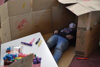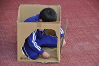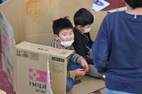 ①だんボールに入ってみる。②入ってみて思いついたことを形にしていく。