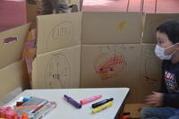 それが、絵をかいたり、穴をあけたり、箱をつなげたりの活動となりました。