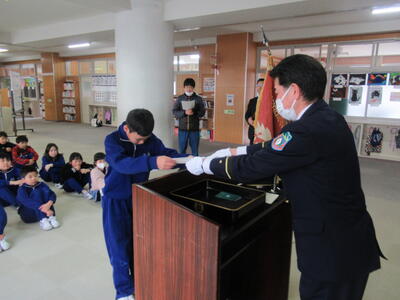 2月28日 南会津地方消防署 下郷出張所所長様においでいただき、少年消防入・退団式を行いました。