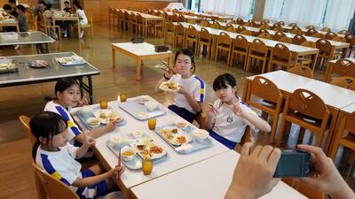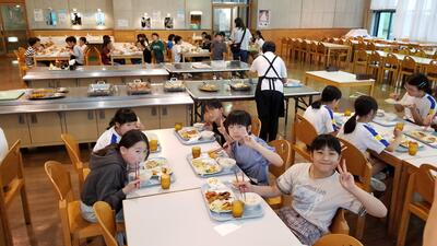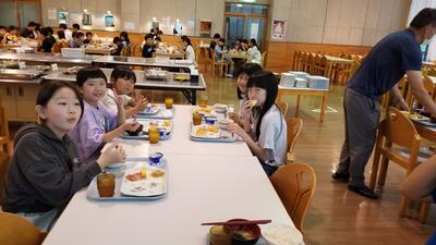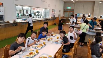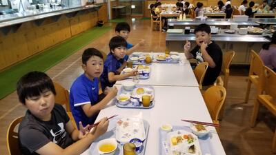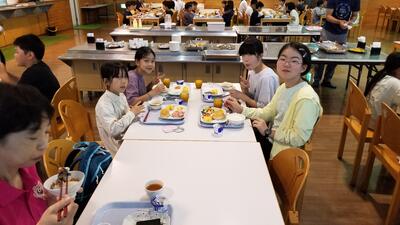 まだ外は明るいですが、夕食です。みんな、バランスよく食べていました。