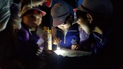 自然の家の館内を隅から隅まで、キーワードカードを探し回る活動です。