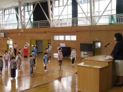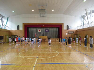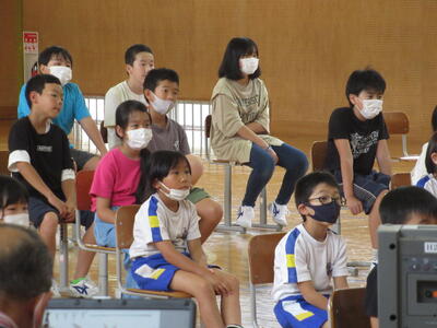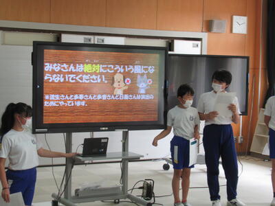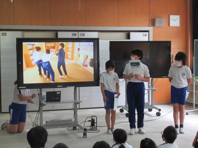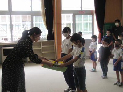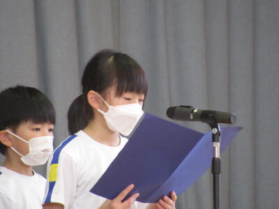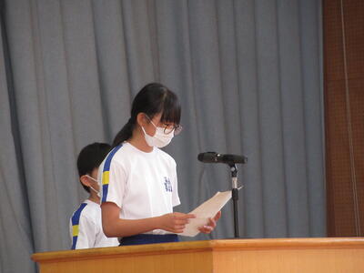 2学期初めの全校集会では、代表児童から頑張った発表がありました。