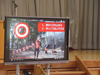 このテレビに映ってるパワーポイントの資料は、6年生が作りました。