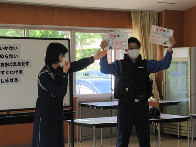 不審者役も引き受けてくださったので、子供たちは、とても真剣に学ぶことができました。
