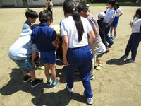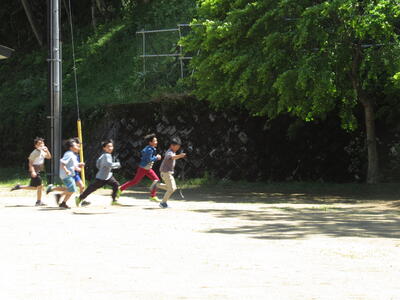 初めのころに鬼役をやった6年生もさすがの動きを見せていました。1年生が楽しめるように、絶妙な力加減で1年生を追いかける6年生の姿がありました。