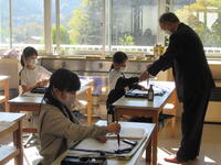 2021年12月15日 17時04分12月13日(月)白石先生による書写指導がありました。この日は、3,4年生が書初めに挑戦です。子供たちは、白石先生の筆使いや注意点を参考にし、真剣な表情で書初めの練習に取り組みました。