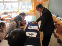12月13日(月)白石先生による書写指導がありました。この日は、3,4年生が書初めに挑戦です。子供たちは、白石先生の筆使いや注意点を参考にし、真剣な表情で書初めの練習に取り組みました。