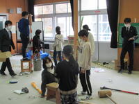 11月2日(火)南会津郡の先生方をお迎えして、6年生理科の研究授業を行いました。めあては、「どうやったら、重いものを楽に持ち上げられるだろうか」です。子供たちは、道具を選び、紐の付け方、長さなど試行錯誤しながらねらいに向かっていました。