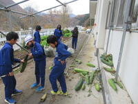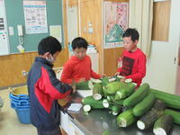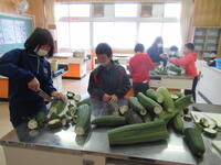 3,4年生は、下郷町のごみ問題から「マイクロプラスチック」問題へと関心を進め、大きくなったヘチマを使ってヘチマたわしを製作しました。大きくなったヘチマを収穫し、協力して作業を進めました。出来上がったヘチマたわしは、販売予定です。
