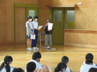 児童会後期の活動を全校生に発表しました。各委員会から目標や活動内容について発表があると、子供たちからは質問もあり、よりよい学校生活を目指して考える時間となりました。