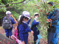 10月13日(水)1年生が大沢地区に森林学習に行ってきました。講師に森の案内人の小椋さんをお迎えし、秋の自然を楽しみました。当日は雨の天候でしたが、雨の楽しみ方や山の恵みをたくさん感じた体験活動となりました。