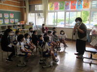 9月15日(水)全校集会を行いました。表彰では、理科自由研究で特選だった2名の児童に賞状を手渡しました。環境衛生委員会からは、自分たちで描いたオリジナルの紙芝居でバランスよく食事する大切さについて話がありました。