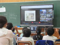 5年生の図画工作科の授業で湯野上温泉駅周辺を描きます。子供たちそれぞれが被写体をタブレットで撮影し、その写真をもとにこれから水彩画を仕上げていきます。