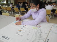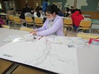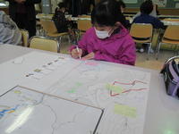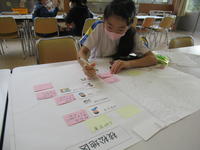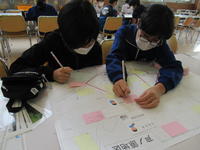 もし江川地区に自然災害が起こったら…想定していないといざというときの避難行動につながりません。子供たちは「いのちを守る学習」として、避難する時の課題を考えました。ある地区からは、「お年寄りが多いので、避難には時間がかかるかも」「道に土砂が流れてきたら、逃げ場がないかも」と地区の課題からどのようにすれば改善できるのか考えていきました。