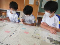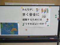 江川小学校は「地域と共に創る放射線・防災教育推進事業」の実践校として、防災教育を「いのちを守る学習」として進めています。もし江川地区に自然災害が起こったらを想定して、危険箇所の確認や避難の手順、避難時の課題、課題の解決策を段階ごとに分けて考えていきます。まずは、自分たちが住む地区の危険な所や避難所について示しました。