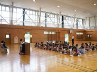 6月17日(木)全校読書の機会を捉えて、体育館で距離を保ちながら読み聞かせを行いました。