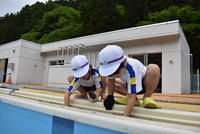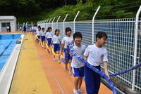 6月10日(水)プール開きが行われました。今年度は、体育館を広く使ってのプール開きでしたが、全員で心を込めてプールに安全祈願をしました。水泳の学習が安全で楽しく、それぞれの目標達成ができるよう進めます。