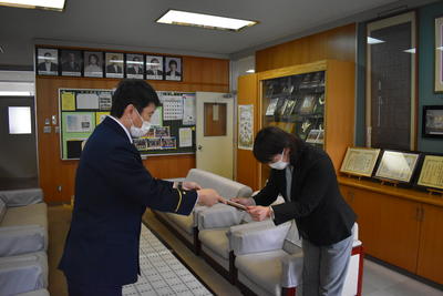 4月20日(月)放課後子ども教室「えがわっ子クラブ」のコーディネーターの方からマスクの寄贈がありました。指導員の方々が協力して、全児童分のマスクを作ってくださいました。