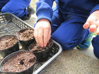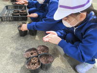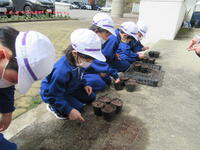 1年生の天真爛漫な表情が輝いています。4月21日には、生活科で「おくら」の種をまきました。おくらが芽を出し、大きくなっていく様子が楽しみです。