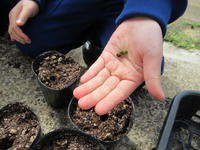 校舎脇の花壇を畑に変身させています。今年度は、キュウリを植える予定です。