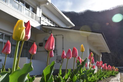 この写真は4月23日、学校が臨時休業に入った次の日の画像です。今度登校するときは、どんな学校の様子になっているでしょう…チューリップは日増しに美しく咲いて、みんなを待っていますよ。