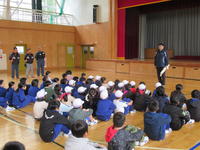 児童には予告しないで、休み時間に訓練を実施しました。児童は放送をよく聞き、避難しました。