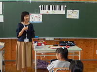 「メロディオンの先生」をお迎えして、鍵盤ハーモニカの正しい使い方や手入れの仕方を学習しました。