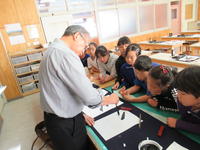 1学年2時間ずつ、毛筆の指導をしていただきました。
