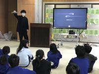 江川小学校5,6年生は、総合的な学習の時間の中でCM制作に取り組んでいます。今日は、CM絵コンテをもとにどのように踊りや音楽を取り入れていくか話し合いました。サウンドクリエイターの鹿目信和さんを講師にお迎えし、下郷町の魅力が輝く子ども発信のCMを制作していきます。