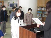 少年消防クラブの入退団式を行いました。6年生には、これからも家庭や地域の消防や防災を意識して生活してほしいという思いの「期待書」を授与しました。また、4年生は新たに入団となります。学校だけではなく、地域の中での役割も考えていければと思います。