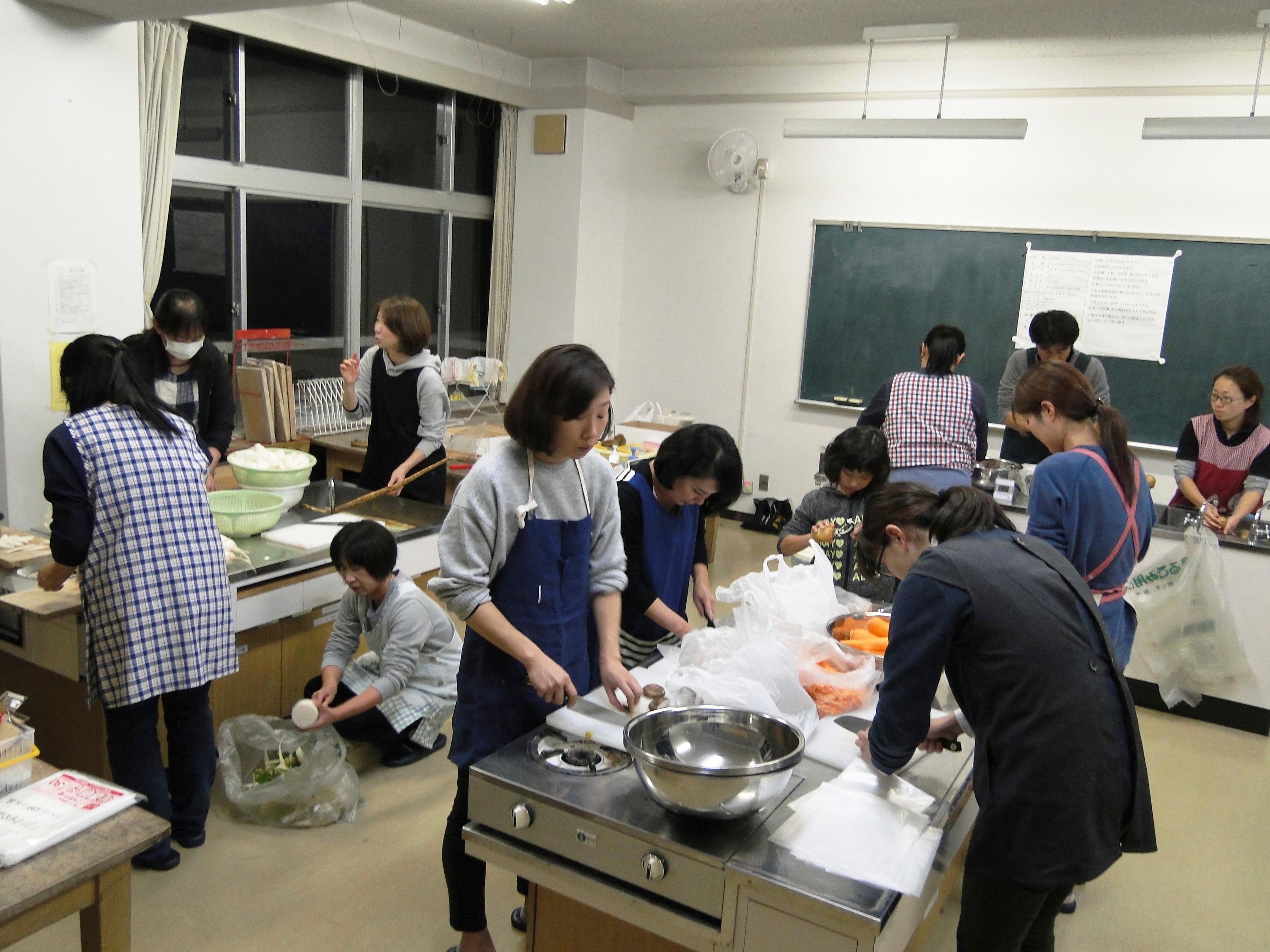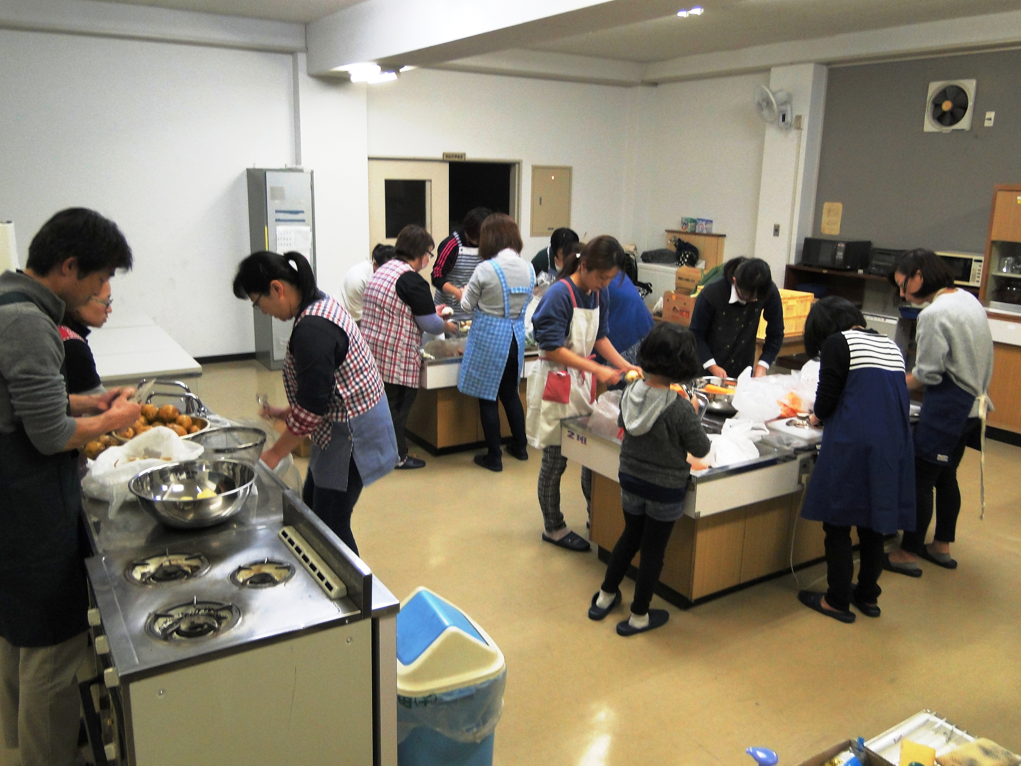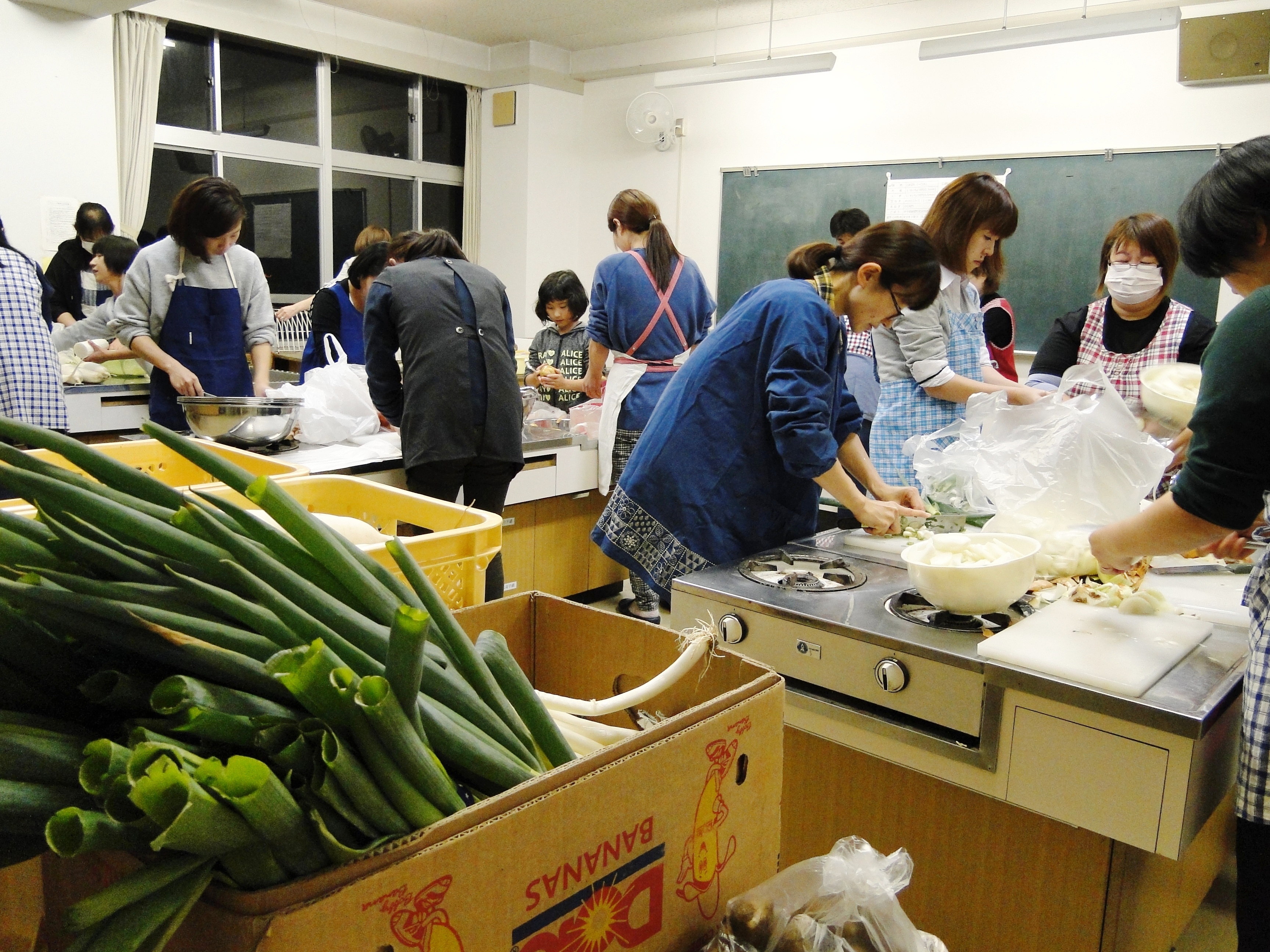 2018年10月19日 19時59分本日19日(金)の夕方、明日開催される学習発表会の昼食用の豚汁づくりに、PTA常任委員の方々が集まってきてくれました。