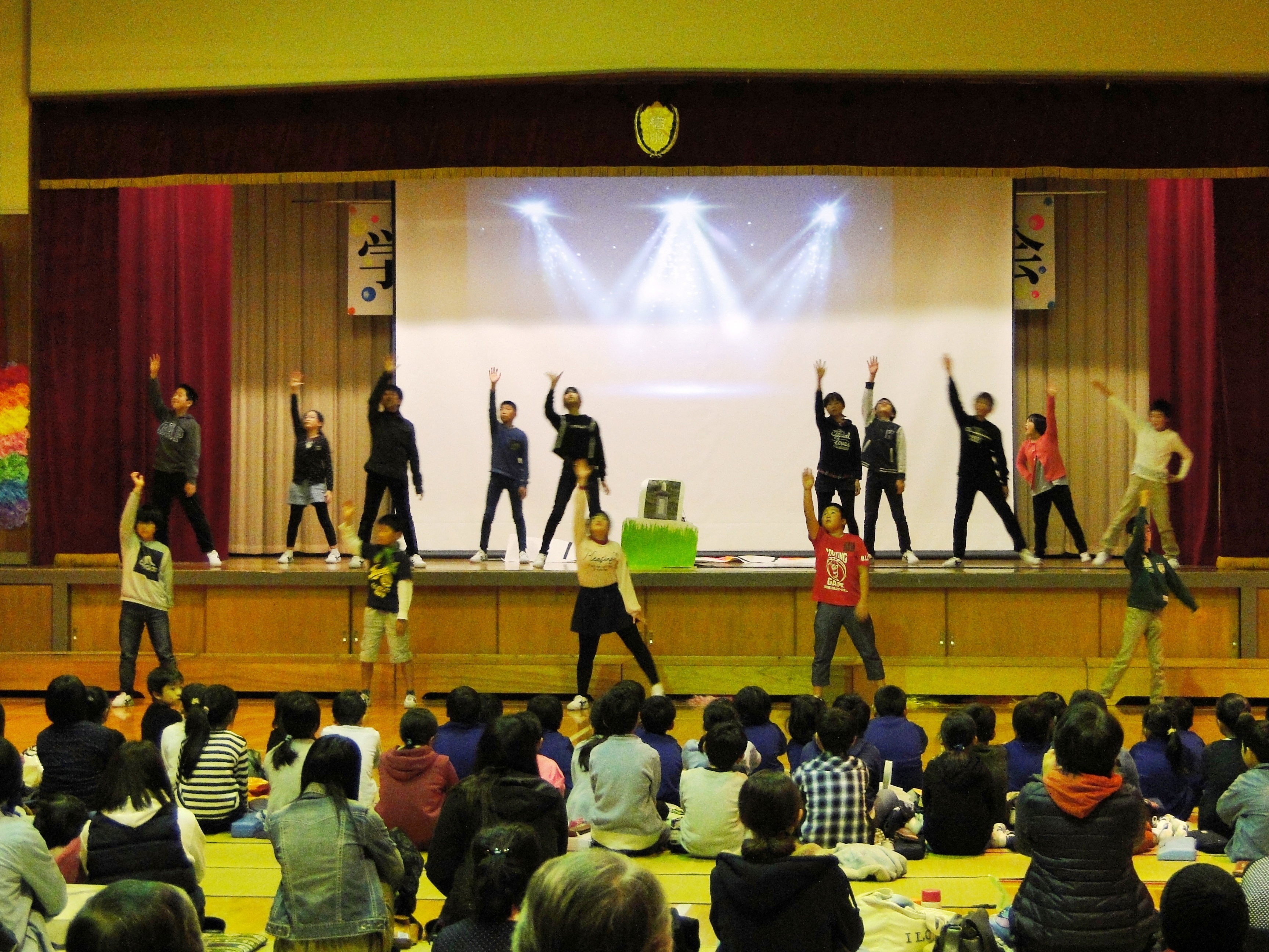 最後は6年生でした。6年生は「人とのつながり」をテーマに、総合や社会科で学習したこと、考え見つめてきたことを劇とダンスにして表現してくれました。さすがは6年生の発表で、15名が学習の中で抱いた絆・つながりを、最高の演技で見せてくれました。