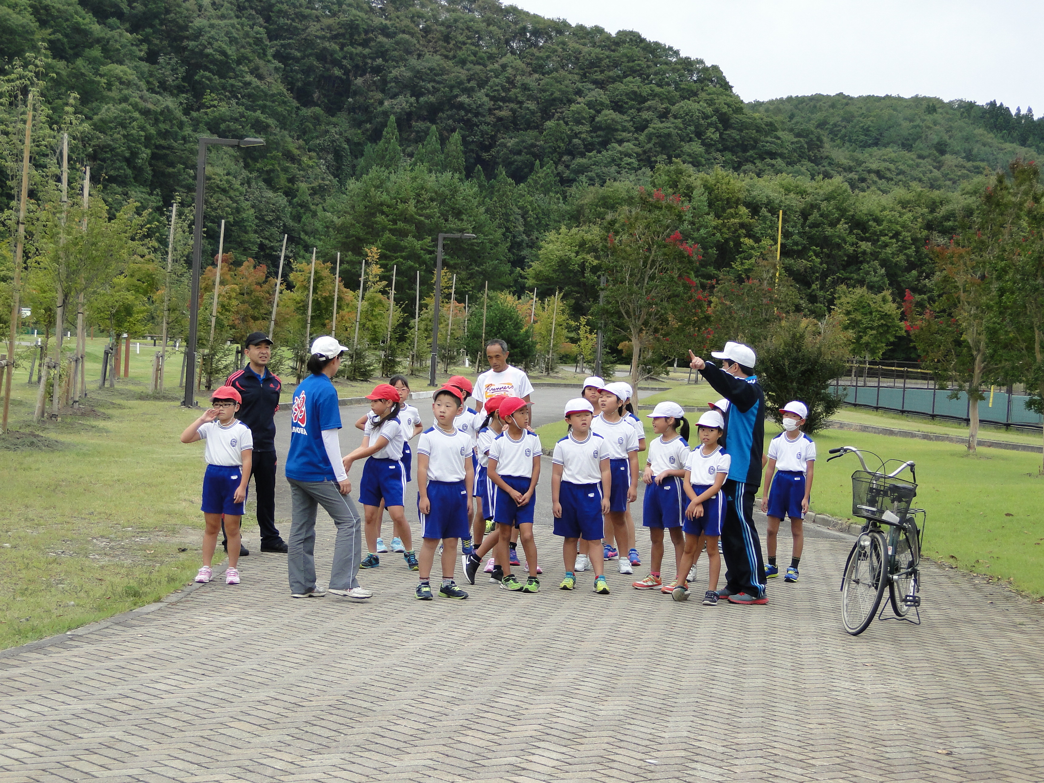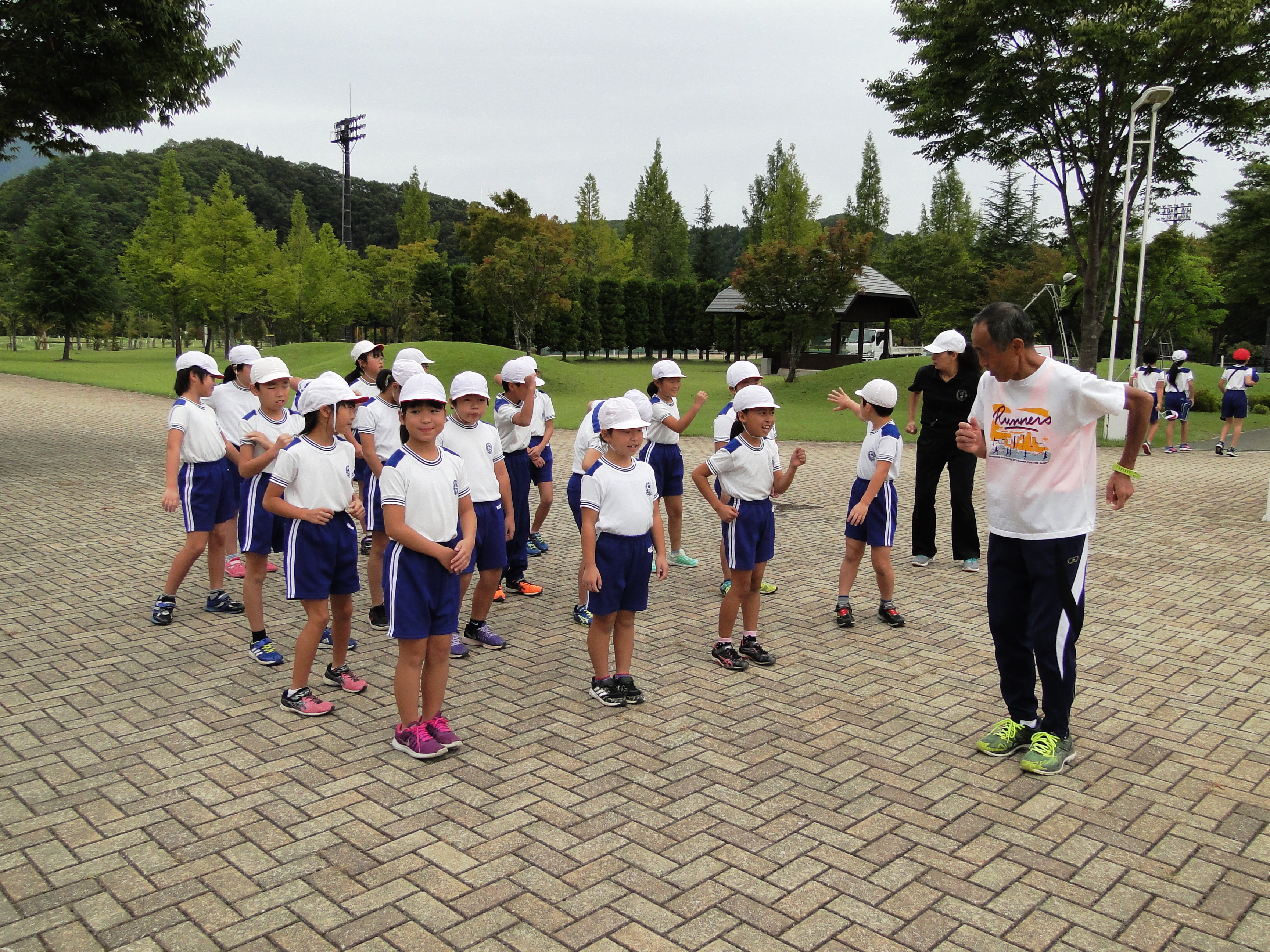 1年・3年・5年は、初めてのコース・周数となるため、実際のコースを走りながら、途中途中で、コースの確認と併せて、下り坂や上り坂の走り方、道の最短距離を走ることなどを教えてもらいました。2年・4年・6年は、走る前に早く走るためのポイントを教えてもらい、試走のタイムを計りました。