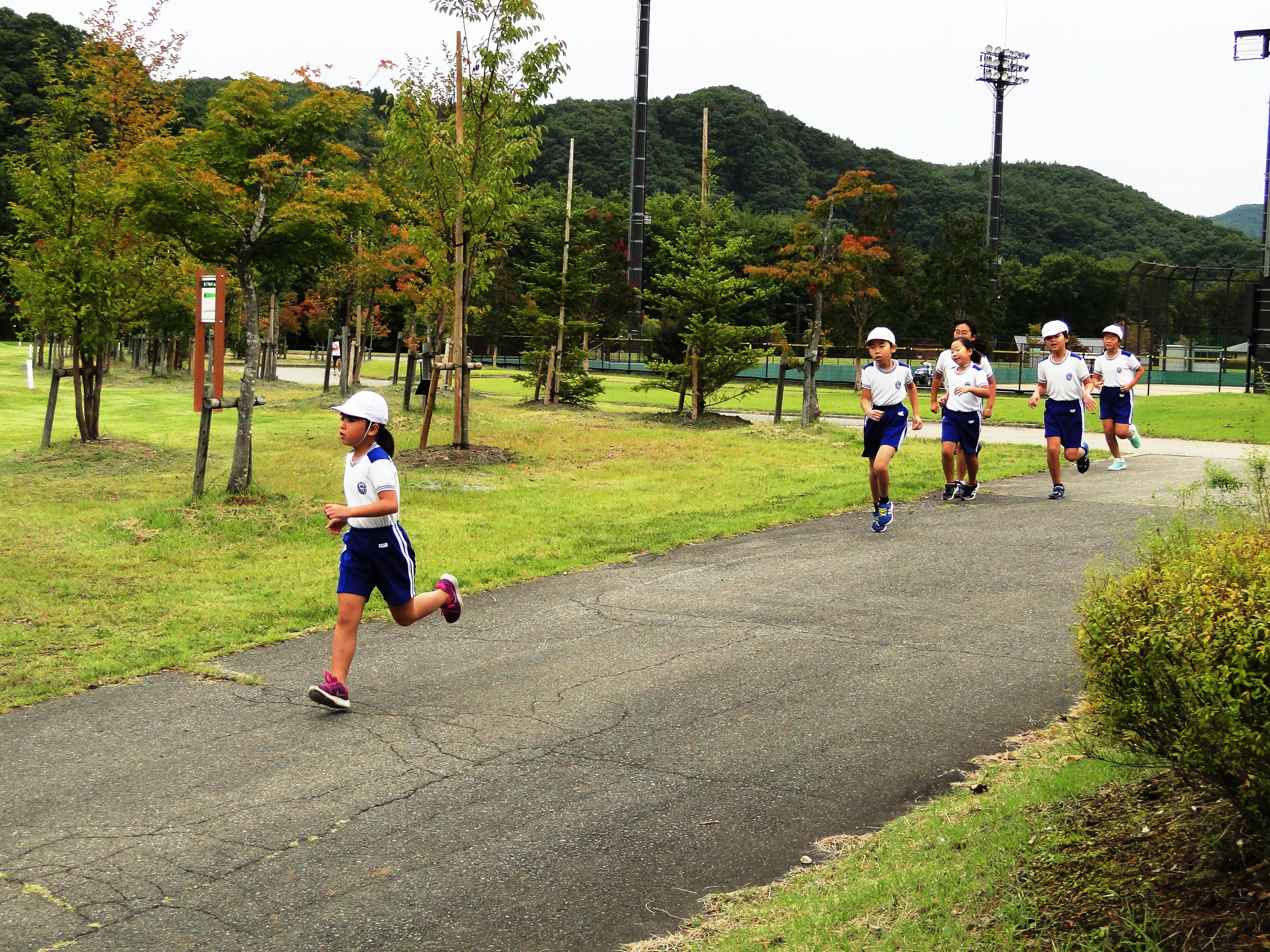 2018年9月21日 07時23分昨日20日(木)、来月7日(土)に開催される「ジュニアマラソン大会」へ向けて、会場となる町のコミュニティーセンターへ、全校で試走に出かけました。
