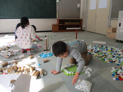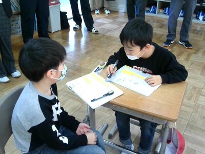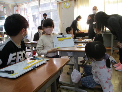 1年生は、図画工作科の「同じものを使って色々なものを作ろう」の学習で、ペットボトルキャップを使って楽しそうに制作していました。2年生はかけ算九九の学習で、たくさんの先生方のところへ行き、暗唱を確認してもらっていました。