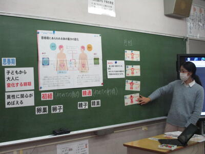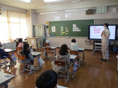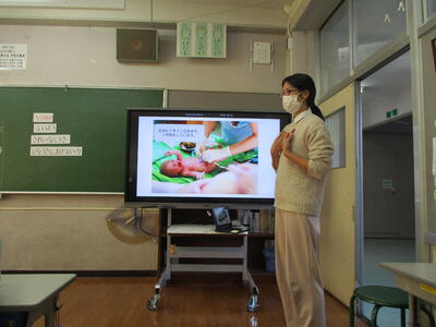 3年生の学級活動で「おへそのひみつ」について学習しました。へその緒の役割についてクイズをしながら学ぶと共に、赤ちゃんが生まれた後、へその緒がどのようになるか、その変化についても画像を見ながら学びました。