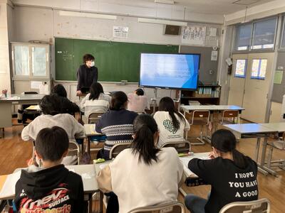 看護師という職業を通して、「①友達を大切にすること」「②地元を大切にすること」「③自分の夢を大切にすること」について教えてくださいました。楢原小学校の先輩でもある湯田さんからお話を聞くことで、大きな気付きや学びになったようです。この度は誠にありがとうございました。
