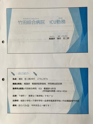 11月21日(火)に総合的な学習の時間「キャリア教育」の一環として、竹田綜合病院の看護師、「湯田 宏二郎」様を招聘し、職業講話をしていただきました。