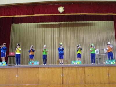 2023年10月14日 15時20分10月14日(土)に、学習発表会がありました。1学年の「大きなかぶ」音読劇、2学年の「お手紙」音読劇、3・4学年の「きらきら星」「君をのせて」の演奏、5・6学年の「鼓笛演奏」と「楢の葉ソーラン」でした。行事が続く中、子供たちはこれまでの準備から当日の発表まで、本当によく頑張りました。