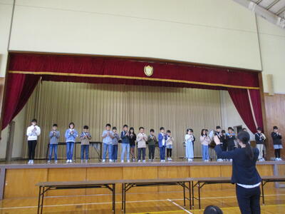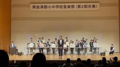 2023年10月18日 14時57分10月18日(水)、御蔵入交流館において南会津郡小中学校音楽祭が開催されました。3・4年生は、これまでの猛練習の成果を存分に発揮し、「きらきら星」と「君をのせて」の2曲を堂々と演奏することができました。「音」を合わせることは「心」を合わせること。3・4年生27名の心が合ったすばらしい発表でした。音楽祭に際し、子供たちの指導をしてくださったCS委員の室井州美枝様、当日楽器の搬出入にご協力をいただきました保護者の皆様、これまで子供たちを支えてくださった保護者の皆様に、心より御礼申し上げます。