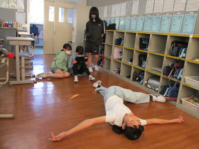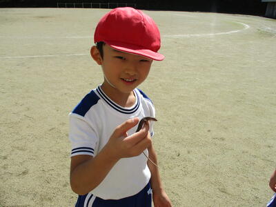 2023年10月18日 13時05分生活科の「秋をさがそう」の学習で、学校周辺を散策しました。子供たちは夢中になって探し、落ち葉や秋のトンボを見つけました。他にもカナヘビやゾウムシも捕まえることができ、まだまだたくさんの生き物がいることに気付きました。