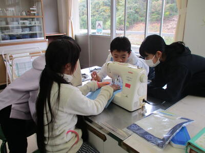 2023年10月20日 16時45分5・6年生の家庭科は、ミシンの学習に入りました。5年生はエプロン、6年生はトートバッグかリュックサックを作ります。5年生は初めてミシンを扱うので、6年生から使い方を教わりました。これも複式学級の良さですね。作品が完成するのが楽しみです!