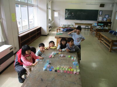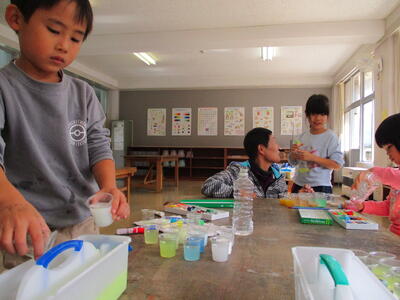 2023年10月25日 07時44分図工で絵の具を使っていろ水を作りました。