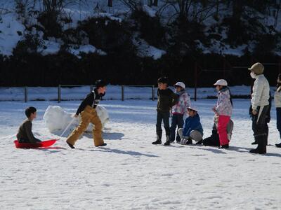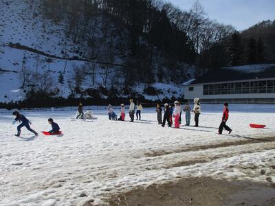 2023年1月13日 13時29分今日の体育の授業は、外での活動でした。3・4年生は、体力向上の一環として「そりリレー」を実施しました。チーム対抗で勝負することで盛り上がり、冬にしかできない運動に親しむことができました。