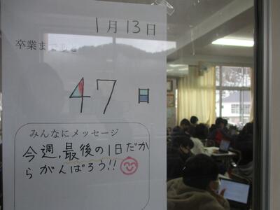 2023年1月16日 13時08分第3学期がスタートして1週間が経ちました。6年生教室には「卒業カウントダウンカレンダー」が飾られています。卒業までの残りわずかな時間を大切にして過ごしていきたいです。