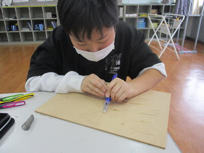 2023年1月19日 16時04分図工の授業の様子です。4年生は、前回の彫刻刀を使う練習を生かしながら、彫り進めています。5年生は、防火ポスター制作に真剣に取り組んでいます。自分の作品に向き合い、思い思いに表現している姿がすばらしいです。