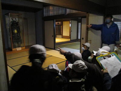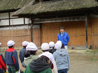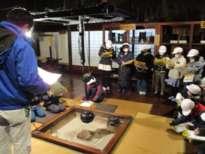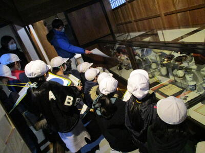2022年12月13日 16時55分社会科「市のうつりかわり」の学習で、大内宿町並み展示館へ行ってきました。昔の人々の生活を支えたさまざまな道具について、町教育委員会の渡部さんに詳しくご説明いただきました。冷たい雨の降るあいにくの天気でしたが、子供たちは興味深々で話に聞き入り、詳しくメモを取ることができました。